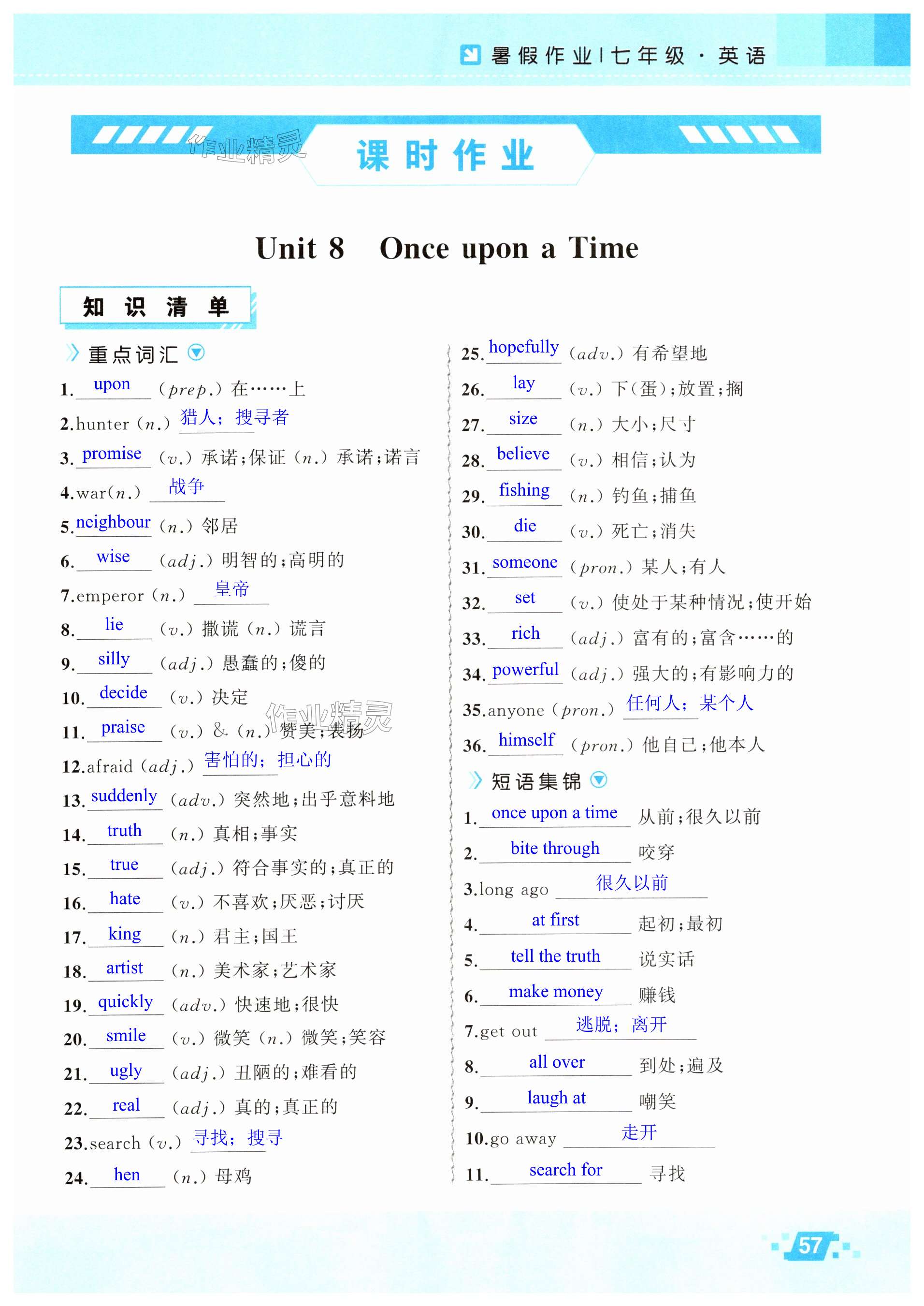 2025年暑假作业新疆青少年出版社七年级英语人教版
