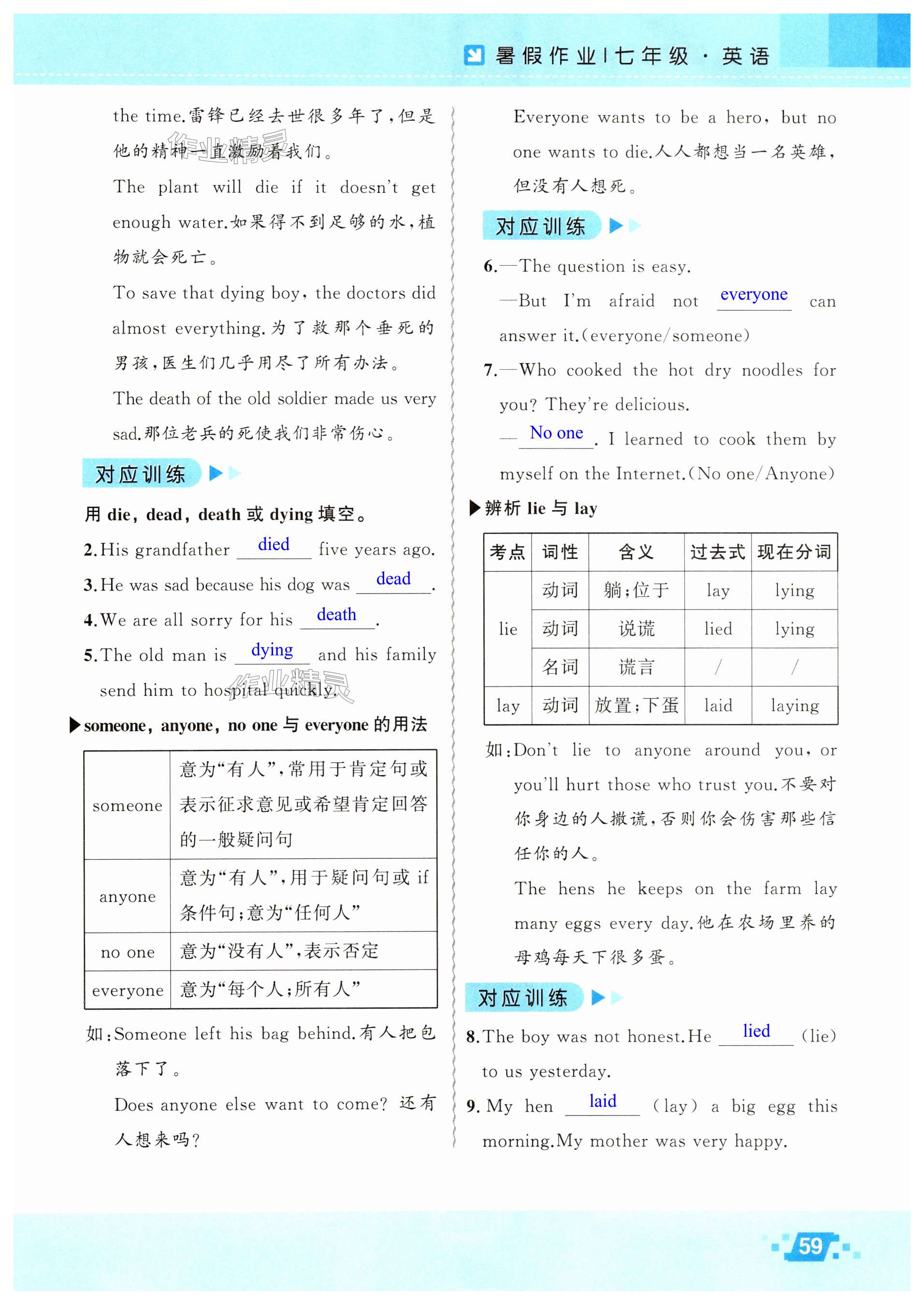 注:目前有些书本章节名称可能整理的还不是很完善,但都是按照顺序排列的,请同学们按照顺序仔细查找。练习册 2025年暑假作业新疆青少年出版社七年级英语人教版 答案主要是用来给同学们做完题方便对答案用的,请勿直接抄袭。