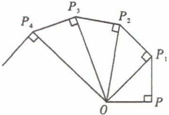 3. (张家界) 如图,$ OP=1 $,过 $ P $ 作 $ PP_{1} \perp OP $ 且 $ PP_{1}=1 $,得 $ OP_{1}=\sqrt{2} $;再过 $ P_{1} $ 作 $ P_{1}P_{2} \perp OP_{1} $ 且 $ P_{1}P_{2}=1 $,得 $ OP_{2}=\sqrt{3} $;又过 $ P_{2} $ 作 $ P_{2}P_{3} \perp OP_{2} $ 且 $ P_{2}P_{3}=1 $,得 $ OP_{3}=2 \cdots \cdots $ 依此法继续作下去,得 $ OP_{2012}= $