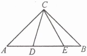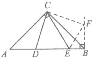26. 如图,$ \triangle ABC $ 中,$ \angle ACB=90^{\circ} $,$ AC=BC $,$ D、E $ 在 $ AB $ 上,且 $ \angle DCE=45^{\circ} $。
