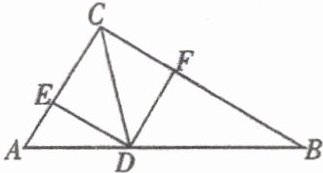 。又$D$是$\angle ACB$角平分线上的点,且$DE$、$DF$为$D$到边$AC$、$BC$距离,故$DE = DF$。