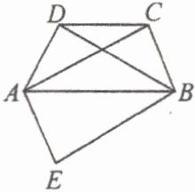 22. 如图,在等腰梯形$ABCD$中,$AB// CD$。$AC$、$BD$是对角线,将$\triangle ABD$沿$AB$翻折到$\triangle ABE$的位置。试判断四边形$AEBC$的形状,并说明你的结论。