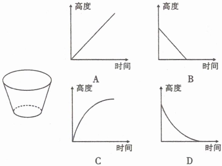 2. (潍坊)用固定的速度向如图所示形状的杯子里注水,则能表示杯子水面的高度和注水时间的关系的大致图象是(