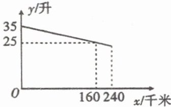4. (上海)李老师开车从甲地到相距$240$千米的乙地,如果油箱剩余油量$y$(升)与行驶里程$x$(千米)之间是一次函数关系,其图象如图,那么到达乙地时油箱剩余油量是______