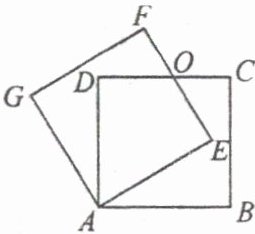 20. 如图,正方形 ABCD 绕点 A 逆时针旋转 $ n^{\circ} $ 后得到正方形 AEFG,边 EF 与 CD 交于点 O.