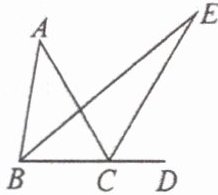 19. 如图,在$\triangle ABC$中,$∠A=40^{\circ }$,D 是 BC 延长线上一点,$∠ABC$的平分线与$∠ACD$的平分线交于 E,求$∠E$的度数.