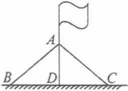 解:地面的固定点到旗杆底部的距离相等。因为∠ADB=∠ADC=90°,AB=AC,AD=AD,所以△ADB≌△ADC,所以BD=CD。