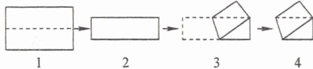 10. 如图,小明拿一张矩形纸图 1,沿虚线对折一次得到图 2,再将对角两顶点重合折叠得图 3,按图 4 沿折痕中点与重合顶点的连线剪开,得到三个图形,这三个图形分别是 (