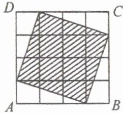 5. 如图,在一个 $ 4 × 4 $ 个小正方形组成的正方形网格中,阴影部分与正方形 $ ABCD $ 面积之比是(
