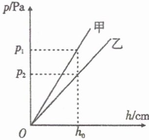 11. 小亮同学在研究液体内部压强的规律时,大胆探索,用甲、乙两种液体多次实验,根据实验数据画出了液体压强随深度变化的图象如右图所示,则甲、乙两种液体的密度关系是(