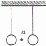 9. 两只乒乓球分别用细线吊在同一高度并相距5cm左右,如右图所示,现用嘴靠近a点并向两乒乓球中央吹气,气流方向与纸面垂直向里时,则两乒乓球将(