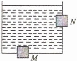5. 如右图所示,圆柱形容器底部和侧壁分别有一个木塞 M、N,它们浸在水中的体积相等,则(