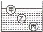 13. 分别用木头、铜、铁制成甲、乙、丙三个小球,将它们放入水中,三个小球静止时位置如右图所示,以下判断正确的是(