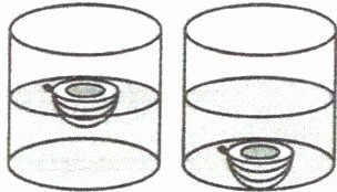6. (济南)如右图所示,先将半个西瓜皮轻轻放在水缸中,发现它漂在水面上,此时它受到的浮力大小为$F_{浮1}$;然后把它按入水面下,发现它沉入水底,此时它受到的浮力大小为$F_{浮2}$,则$F_{浮1}$与$F_{浮2}$的大小关系是 (