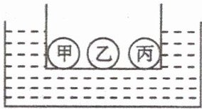7. (江西)一个底面积为$0.04m^{2}$的长方体水槽中盛有0.2m深的水,轻轻放入一个小球,如图6所示,静止时槽中水面升高了$5×10^{-3}m$.($ρ_{水}=1.0×10^{3}kg/m^{3}$,g取10N/kg)
