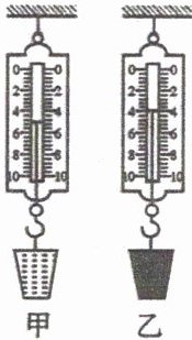 ②在塑料杯中装满水,弹簧测力计的指针指在如右图甲所示的位置;