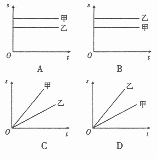 4. 甲、乙两人同时从同一起跑线出发,同向做匀速直线运动,某时刻他们的位置如右图所示,下列各选项中能正确反映两人运动距离与时间关系的是(