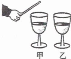 12. 如右图所示,在两个完全相同的高脚玻璃杯内装有相同深度的水,当用筷子轻轻敲击杯子时,两个杯子就会发出相同的声音.那么,下列说法中正确的是(