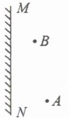 19. 如下图所示,$ MN $ 是平面镜,$ A $ 为发光点,$ B $ 为反射光线上的一点,试画出经过 $ B $ 点的反射光线和与这条光线对应的人射光线.