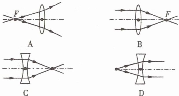 1. 光通过透镜的光路如下图所示,正确的光路图是(