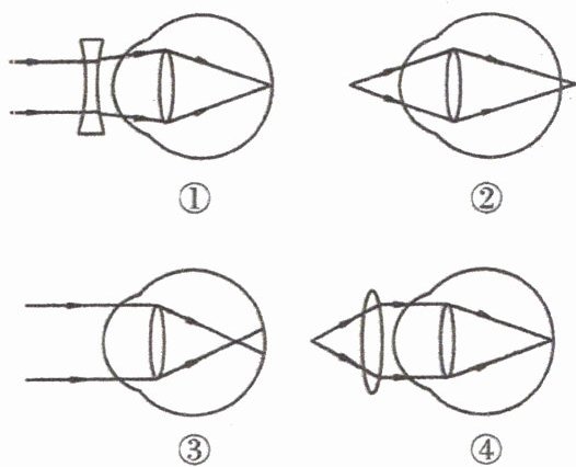 3. 小风矫正了近视眼后看书轻松多了,心想也该帮爷爷矫正老花眼,如下图所示是用来表示老花眼的成像情况和矫正做法,其中正确的是(