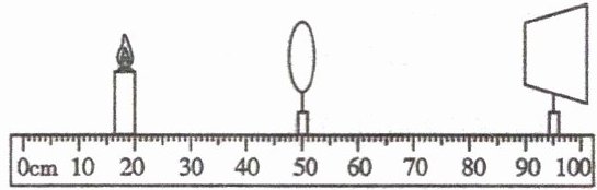 7. 在探究凸透镜成像规律的实验中,当烛焰、凸透镜、光屏位于如下图所示位置时,烛焰在光屏上呈现一个清晰放大的像. 要使烛焰在光屏上呈现一个清晰缩小的像,调节的方法是(