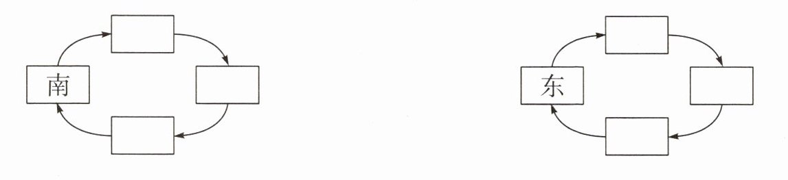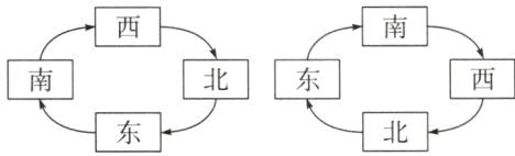 发现:东、南、西、北这四个方向是按( )时针方向排列的。