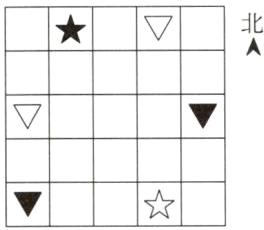 (2)$▼$先向北跳2格,再向东跳4格后的位置如图所示。请画出$▼$移动前的位置。