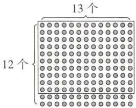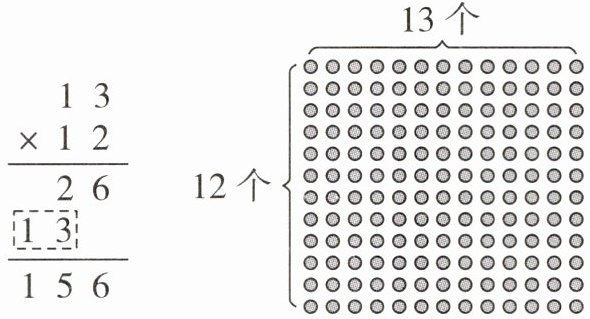 2. 如图,左边的竖式计算中$\fbox{13}$表示的是( )×( )的积,请在右边点子图中圈出来。