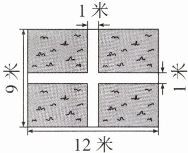 3. 某小区的草坪规划图如图所示,每块草坪的长相等,宽也相等。草坪的总面积是多少平方米?