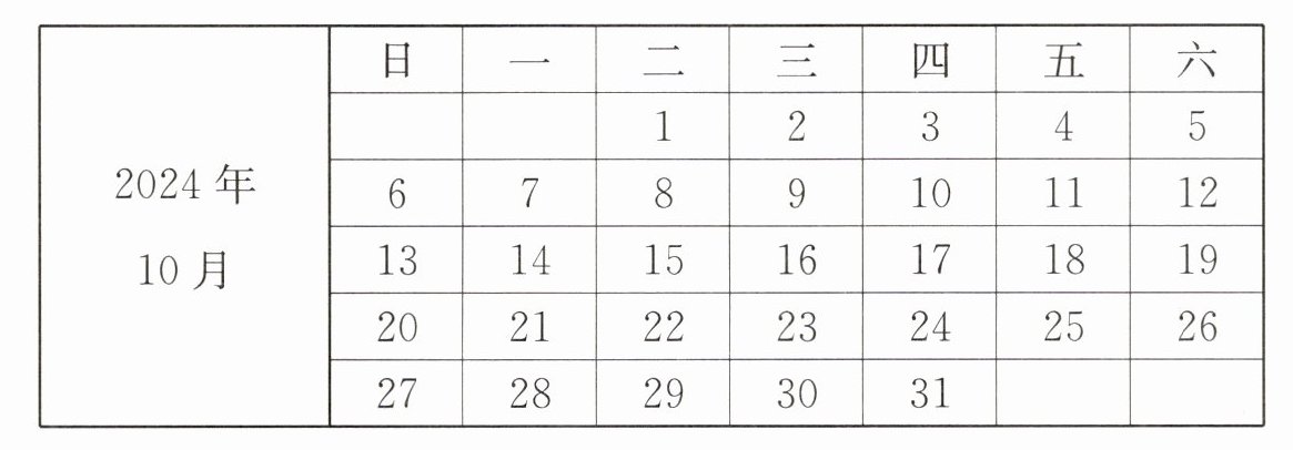 )天。(3)李老师 10 月 27 日要去出差学习,11 月 3 日出差学习回来,回来那天是星期(