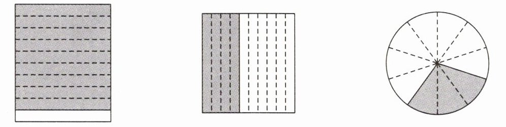 四、把下面各图中的阴影部分用分数和小数表示出来。