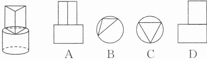 4. 如图,几何体上半部分为正三棱柱,下半部分为圆柱,从上面看到的图形是 (