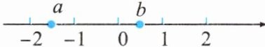 【分析】由实数a,b在数轴上的对应点的位置可知$ a < 0 < b $,且$ | a | > | b | $,$ \therefore a + b < 0 $,$ \frac { a } { b } < 0 $。