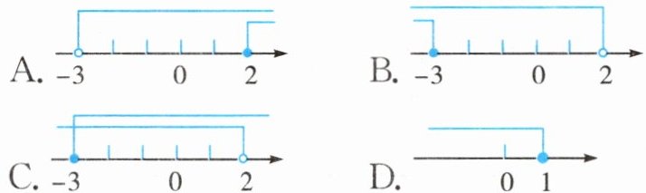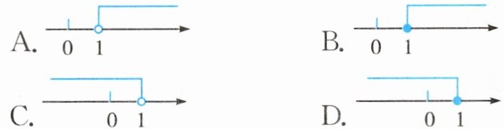 1. (贵州中考)不等式$x<1$的解集在数轴上表示正确的是 (