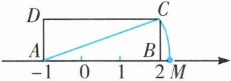 7. 如图,矩形ABCD中,AB=3,AD=1,AB在数轴上,若以点A为圆心,对角线AC的长为半径作弧交数轴于点M,则点M表示的数为(