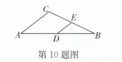 10. 如图,在 $ \triangle ABC $ 中,点 $ D $,$ E $ 分别是边 $ AB $,$ BC $ 的中点。若 $ \triangle DBE $ 的周长是 $ 6 $,则 $ \triangle ABC $ 的周长是(