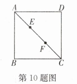 10.(安徽中考)如图,在正方形ABCD中,点E,F将对角线AC三等分,且$AC=12$,点P在正方形的边上,则满足$PE+PF=9$的点P的个数是(