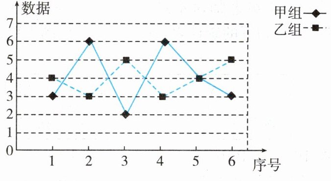17. 已知甲、乙两组数据的折线统计图如图所示,设甲、乙两组数据的方差为$s_{甲}^{2}$,$s_{乙}^{2}$,则$s_{甲}^{2}$