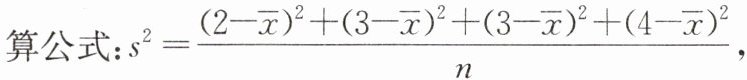 15. 在对一组样本数据进行分析时,小华列出了方差的计算公式:$s^{2}=\frac{(2-\overline{x})^{2}+(3-\overline{x})^{2}+(3-\overline{x})^{2}+(4-\overline{x})^{2}}{n}$,由公式提供的信息,则下列说法错误的是(