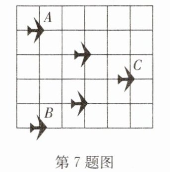 7. 如图是轰炸机机群的一个飞行队形,如果最后两架轰炸机的坐标分别为$A(-2,1)$和$B(-2,-3)$,那么第一架轰炸机$C$的坐标是 (