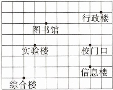 (1) 可知, 校门口的坐标是 $(1, 0)$, 信息楼的坐标是 $(1, -2)$, 综合楼的坐标是 $(-5, -3)$, 实验楼的坐标是 $(-4, 0)$.