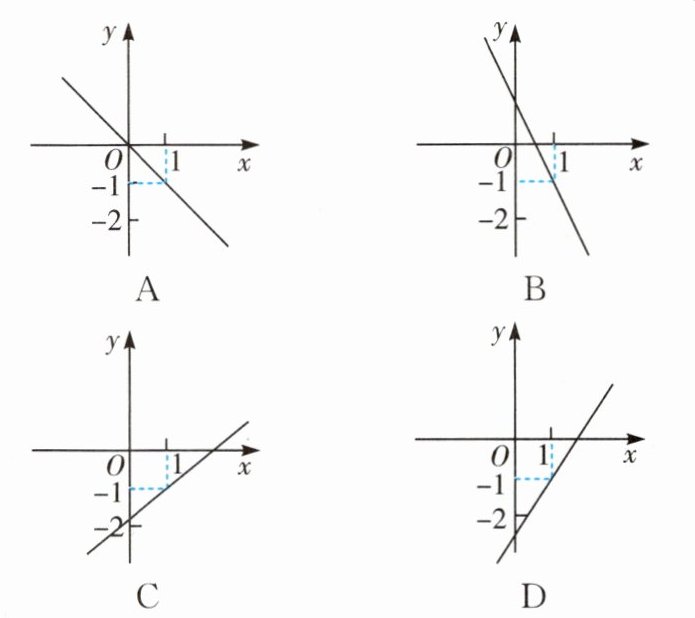8.(邵阳中考)已知正比例函数$y=kx(k≠0)$的图象过点$(2,3)$,把正比例函数$y=kx(k≠0)$的图象平移,使它过点$(1,-1)$,则平移后的函数图象大致是(