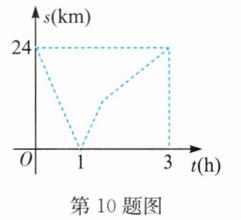 10.(攀枝花中考)甲、乙两地之间是一条直路,在全民健身活动中,赵明阳跑步从甲地往乙地,王浩月骑自行车从乙地往甲地,两人同时出发,王浩月先到达目的地,两人之间的距离s(km)与运动时间t(h)的函数关系大致如图所示,下列说法中错误的是(