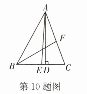 10. 如图,$\triangle ABC$中,AD是BC边上的高,AE,BF分别是$∠BAC,∠ABC$的平分线,$∠BAC=50^{\circ}$,$∠ABC=60^{\circ}$,则$∠EAD+∠ACD=$ (