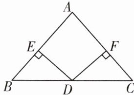 17. (16分)如图,在$\triangle ABC$中,$\angle B = \angle C$,过BC的中点D作$DE \perp AB$,$DF \perp AC$,垂足分别为点E,F.