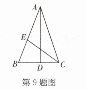 9. 如图,AD,CE分别是$△ABC$的中线和角平分线,若$AB=AC,∠CAD=20^{\circ }$,则$∠ACE$的度数是(