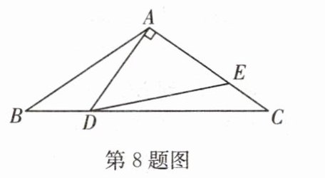 8. 如图,在$△ABC$中,$AB=AC,△ADE$的顶点D,E分别在BC,AC上,且$∠DAE=90^{\circ },AD=AE$.若$∠C+∠BAC=145^{\circ }$,则$∠EDC$的度数为(