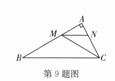 9. (淄博中考)如图,在$Rt\triangle ABC$中,$CM$平分$\angle ACB$交$AB$于点$M$,过点$M$作$MN// BC$交$AC$于点$N$,且$MN$平分$\angle AMC$,若$AN = 1$,则$BC$的长为 (