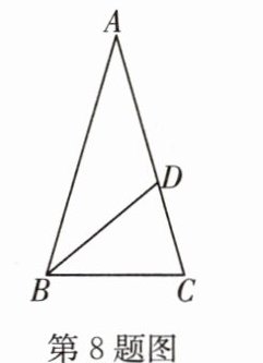 8. (南充中考)如图,在等腰$\triangle ABC$中,$BD$为$\angle ABC$的平分线,$\angle A = 36^{\circ}$,$AB = AC = a$,$BC = b$,则$CD = $ (